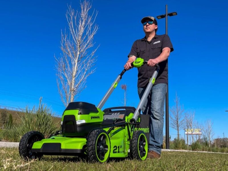 Greenworks has been knocking it out of the park with its 60V lineup, and the 21-inch Self-Propelled Razor Cut lawn mower is no exception. One big update that Greenworks added to this mower is their stacked Razor Cut dual-blade system, which offers improved mulching, bagging, and cut quality compared to single-blade configuration mowers. The blades on this model spin at an impressive 3200 RPM and you can expect up to 80 minutes of runtime using the two 5.0Ah batteries that come in the kit.