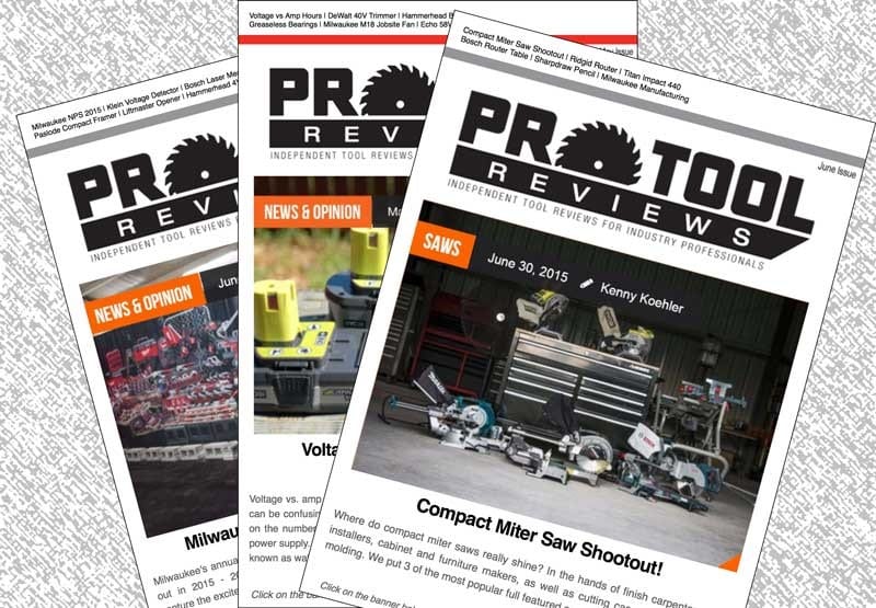 The Pro Tool Reviews tool newsletter goes out twice each week and features our latest tool reviews to give you a hands-on feel for the newest tools from manufactures. Whether it’s the latest cordless tool, a new saw, or something that fits in the hand, our weekly tool newsletter covers. We get Pro perspectives from the tradesmen who use these tools every day and get you feedback on what you need to buy.