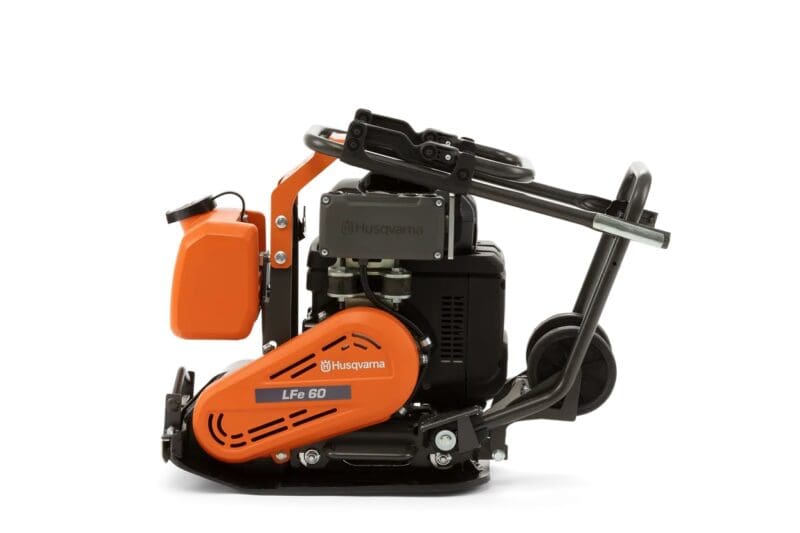 The LFe 60 LAT has a plate width of 13.78 inches. Husqvarna tells us its applications include compacting asphalt and soil. It also features a removable, easy-to-fill water tank that allows you to control the water flow and prevent the bottom plate from sticking to hot asphalt.