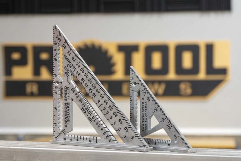 The Swanson Aluminum Speed Square is one of our top 10 go-to tools in the framing and construction business. It is simply one of the tools you will invariably keep in your tool belt. You’ll find yourself using it for cutting simple lumber. You can also make complex angle calculations and measurements on roofing trusses. We decided to take a look at a few of Swanson’s classic Speed Squares and highlight some of the improvements they’ve made on the latest models. Today, we’re looking at the Speed Square Pro (S0100-A), Speed Trim Square (S0145), 7-inch original Speed Square (S0101), and the Big 12 Speed Square (S0107).