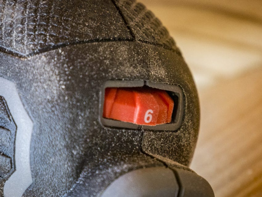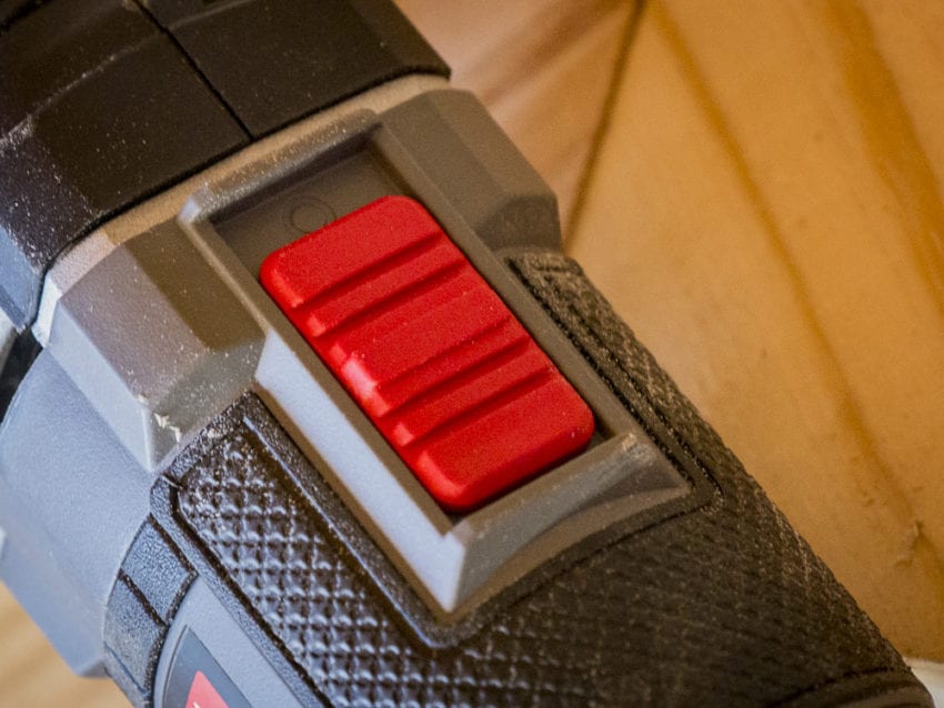 Porter-Cable designed this oscillating tool with a barrel grip. The handle also has some grippy overmolding at the front, middle, and back of the tool. Overall, the tool feels relatively comfortable to hold onto, with the size, weight, and rubber grips playing a big part. A bit more contouring might help even further, but to be fair, we didn’t test a lot of multi-tools that really emphasize a contoured handle, and this is one of the more comfortable designs in the shootout.