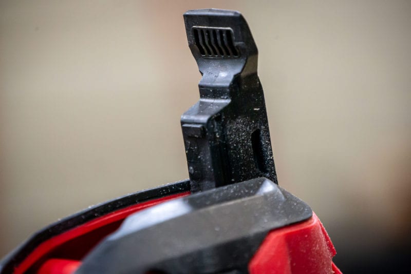 Looking over Milwaukee’s design, the foundation is a barrel grip housing that’s a bit slimmer than similar designs. While models such as Ridgid and DeWalt have a more ergonomic shape, the rounded handle lends itself to a more natural grip when you need to cut at odd angles. The top, bottom, and side grips are all comfortable, even if you don’t have large hands.