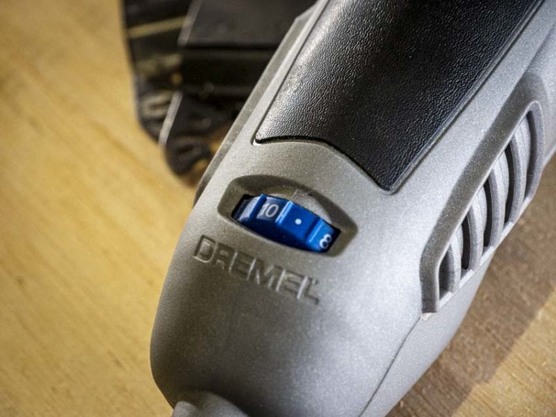 The Dremel Multi-Max MM50 uses a variable speed dial and power switch rather than a trigger system to control its speed. It has 10 settings to cover its 10,000–21,000 OPM no-load speed.