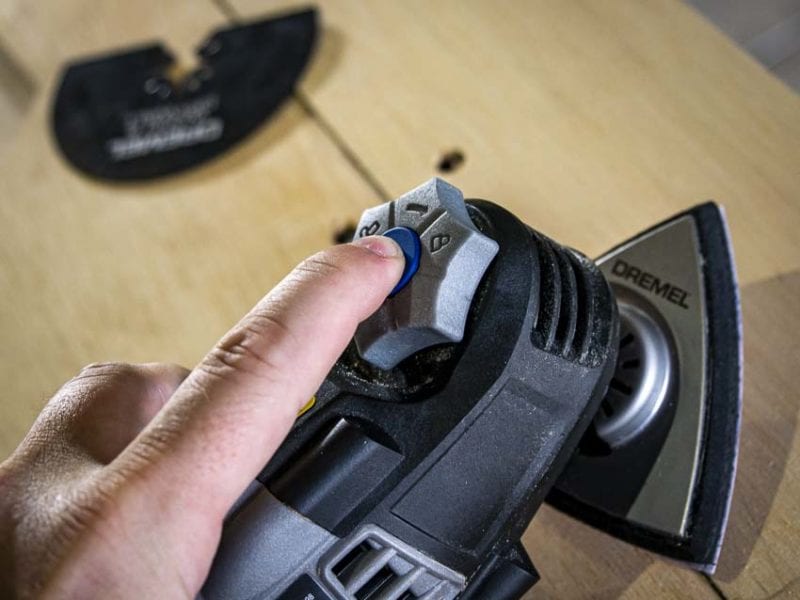 The consequence is that you can’t feather into your cuts like you can with a trigger. However, only a few brands like Ridgid Jobmax oscillating multitool and the DeWalt oscillating tool go the variable speed trigger/paddle route on their multi-tools. Most brands, including Fein, stick with a dial like the MM50.