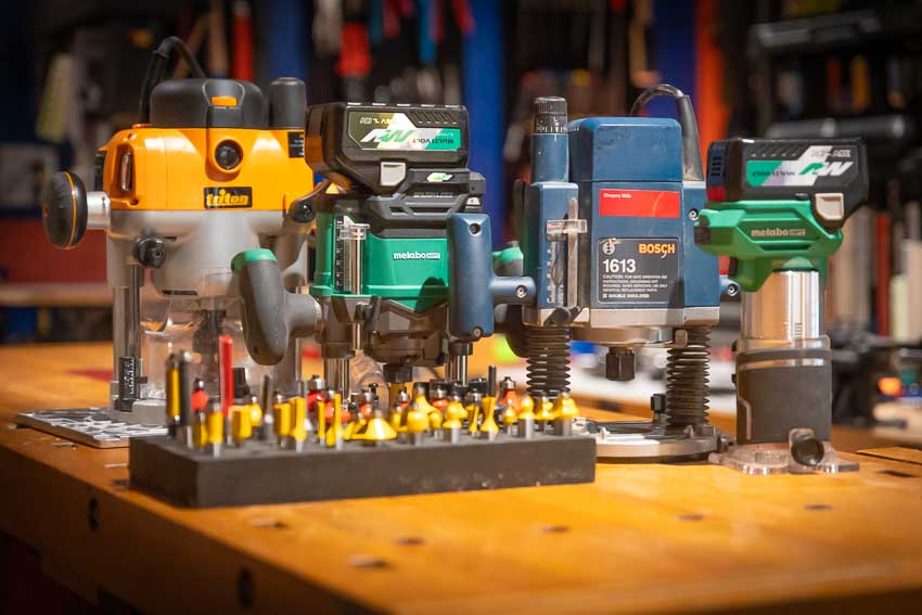 Compact routers—particularly cordless models—feature smaller motors and let you use them one-handed. Weighing less than 5 lbs, these routers weight less than half that of full-size fixed and plunge routers. We reach for these routers first when doing many lighter projects.