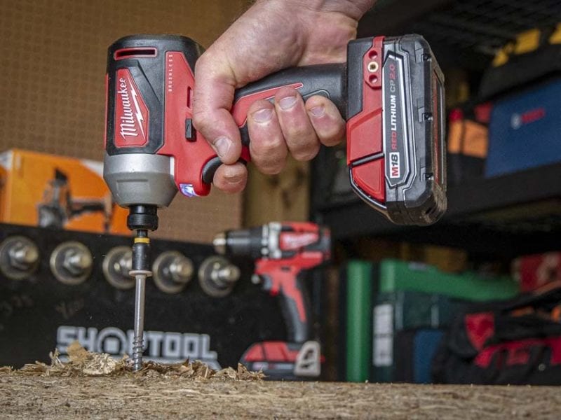 The 2892-22CT Milwaukee M18 Compact Brushless Combo Kit is a really well-rounded drill and impact driver set. Its fairly mundane feature set is offset by quality performance in the class with weights and footprints that are near the most compact for both tools.