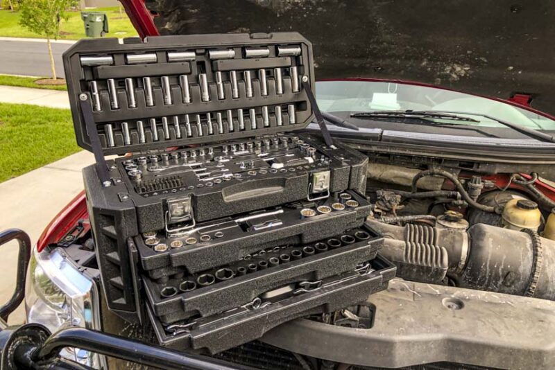 Carrying the box is easy by using either the two side handles or its stout rubber overmolded top handle. With so many tools in the box, it’s heavy, and those side handles are really helpful. Plan to use those side handles if your hands are on the bigger side to avoid your fingers getting pinched on the lid.