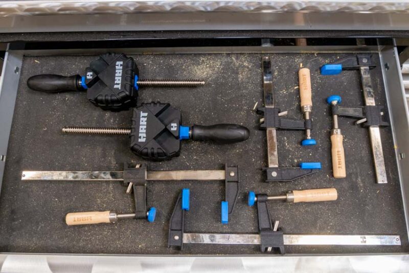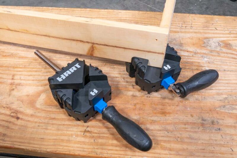 Corner clamps are a must-have for woodworkers. Whether it’s picture frames, cabinets, or drawers, they solve the problem of holding wood at 90° while your glue dries.