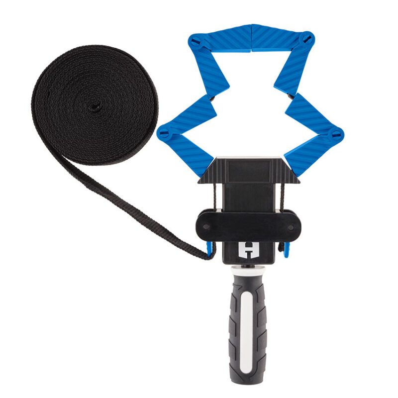 HART’s version includes enough strap to cover 12 feet of linear clamping, four corner pieces, and the clamp itself with a twist handle at the base for tightening/loosing.