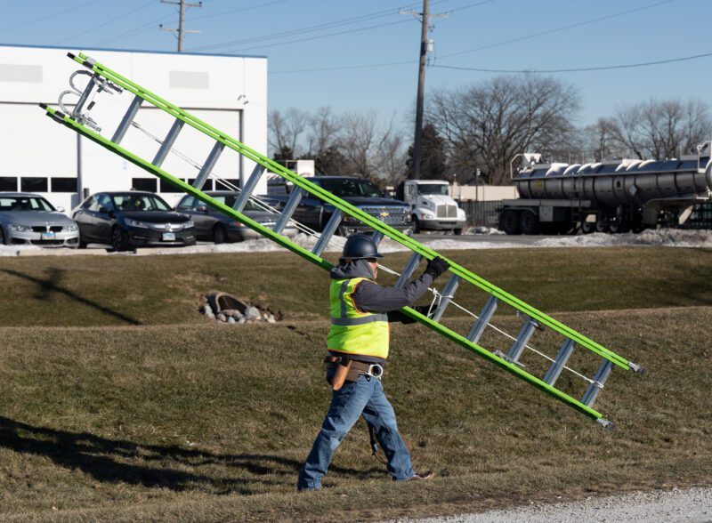 The Werner Aero has some notable safety features that make it stand out from other ladders on the market. It’s a Type 1AA ladder that supports 375 lbs, including the user and their equipment, yet it’s 25% lighter than standard ladders with the same weight rating.