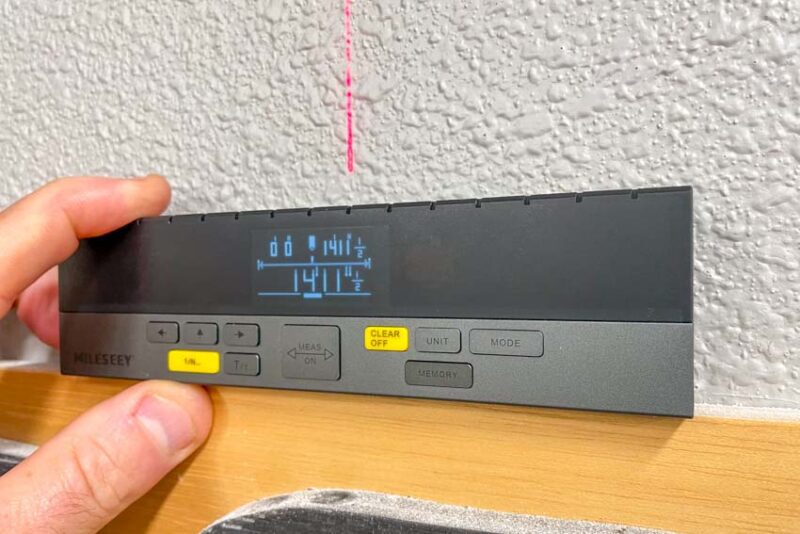 There’s one each for the left and right sides, plus a center laser to use as a reference mark on the surface. As you would expect, the measurement is calculated to include the housing. The cool thing is that you can use the left and right measures at the same time and get an accurate reading. There’s no need to move all the way to one wall or the other.