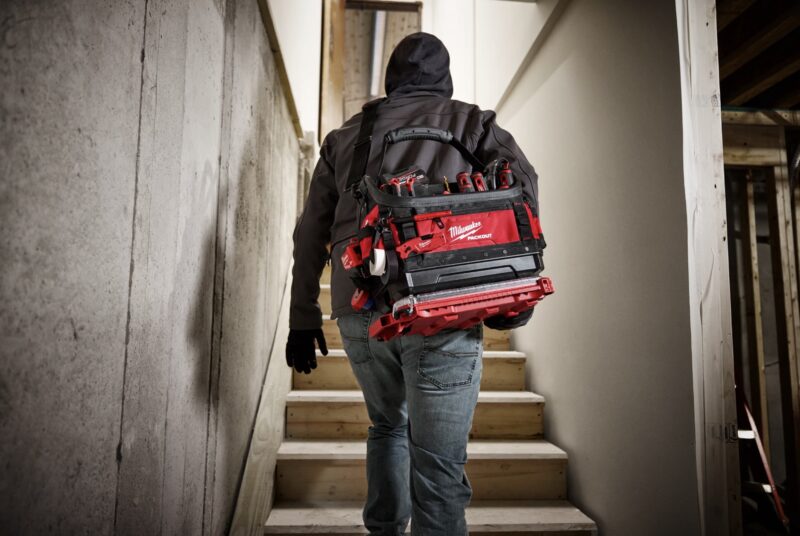 The Packout 15-inch Structured Tote, like the backpack mentioned above, is comprised of tear-resistant layered ballistic material, with a reinforced structure that holds its shape over time. It has a carrying capacity of up to 50 pounds, with 39 pockets for storing the essentials. The padded shoulder strap makes carrying it around the jobsite easier and more comfortable, while the impact-resistant base connects to other Packout solutions via the integrated locking cleats.