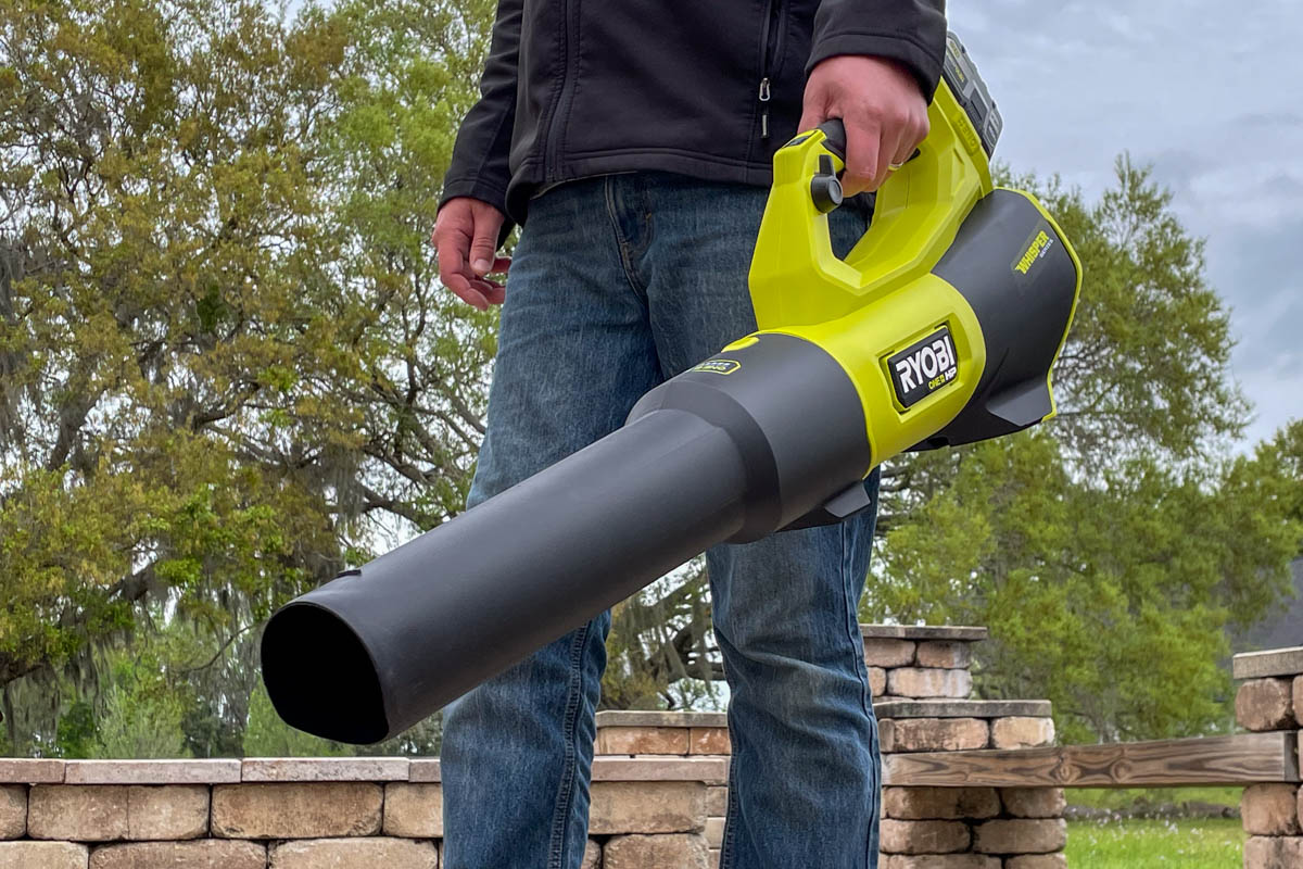 Ryobi’s physical design is straightforward. The inline design pulls air in through the back and pushes it out the front, eliminating the loss of blowing force that side-intake and some backpack designs suffer from.