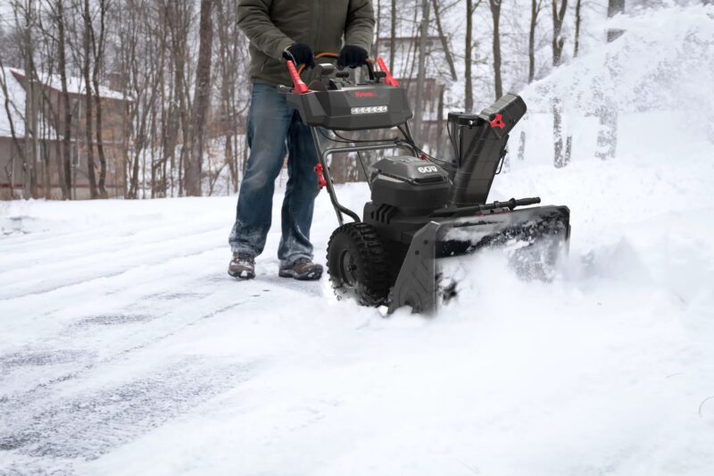 This snow blower has a weight of 132 pounds without the batteries. While this might seem heavy, it’s helped by 15-inch rear wheels that make transportation more manageable.