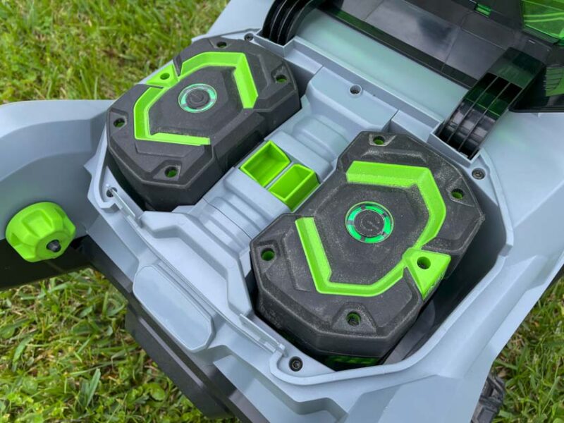 It’s also a Peak Power system. While the machine can operate with just one battery, using two allows it to extend the runtime and use a more efficient power draw. Both ports are active and the electronics take care of switching packs so you don’t have to think about it.