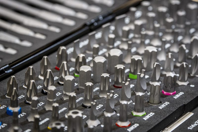 While some types of screwdriver bits are less common, at the very least, be sure to keep a handy assortment of both straight, Philips, Torx, and square head screwdrivers and bits on hand.